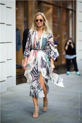 icon們常在街拍中使用的,還有絲巾+腰帶+連衣裙的疊加法。長長的絲巾掛在胸前,用腰帶系住固定,絲巾便和長裙融為一體,成為一件充滿個人色彩的新單品啦~