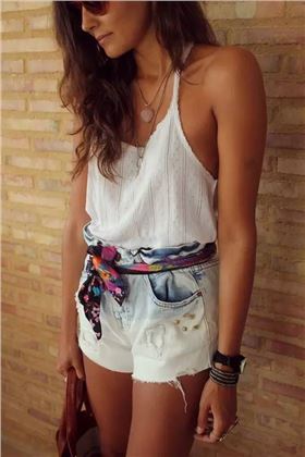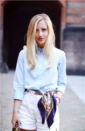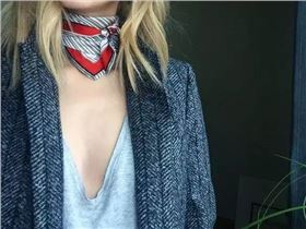 短款的絲巾可以作為choker(項圈)出鏡,緊緊的圍繞兩圈綁個小結,兩角不宜過長,這樣一個極富個性的choker就完成啦。