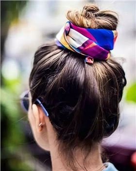 絲巾+丸子頭,簡單可愛又搶眼