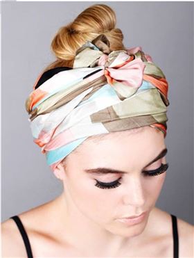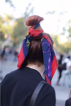 如果覺得上面的方法都太復(fù)雜,像這樣,直接把絲巾作為裝飾扎在頭發(fā)上,也會(huì)很美哦~