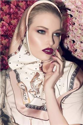絲巾對(duì)角折成三角形包于頭部,是上世紀(jì)50年代的復(fù)古摩登風(fēng)情。