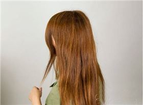 2、將頭發(fā)分成左中右三等分。左邊和右邊的頭發(fā)分別放到胸前。中間的頭發(fā)用一根細(xì)長(zhǎng)絲巾系住。