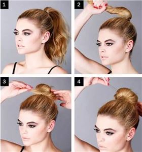 同樣的,將頭發(fā)扎成馬尾后分成兩股,以纏繞的方式來(lái)弄一個(gè)丸子頭,這樣松垮隨意的風(fēng)格更加甜美隨性。
